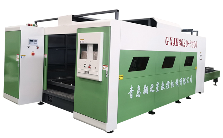 GXJH系列自动交换工作台光纤激光切割机是采用先进的光纤激光器输出高能量密度的激光束,并聚焦在工件表面上,使工件上被超细焦点光斑照射的区域瞬间融化和气化,通过数控机械系统移动光斑照射位置而实现自动切割。设备配有自动交换工作台,提高工作效率。它是集光纤激光技术、数控技术、精密机械技术于一体的高新技术设备。其具有以下优点: